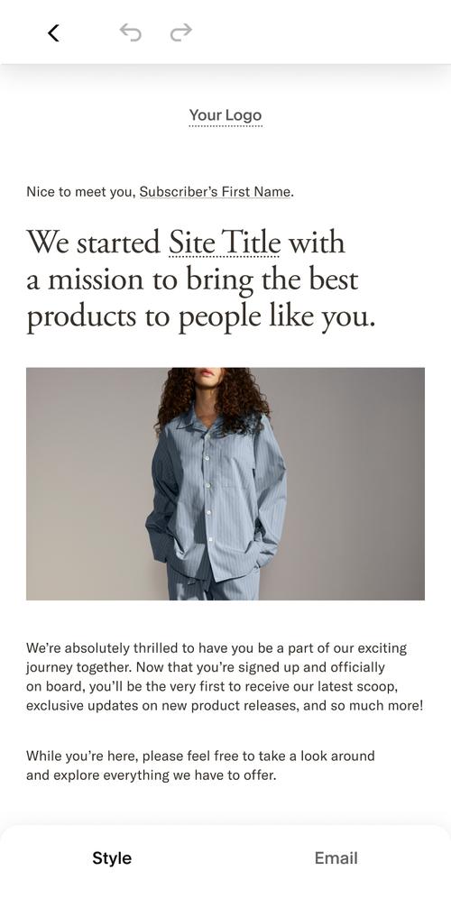 Promote your store products, newsletter, or paid content. Display product information directly in emails or add a discount code to turn subscribers into customers.
